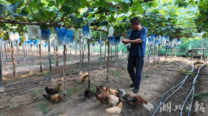 尽管葡萄产量逐年增加,但葡萄价格却持续下跌。去年,余城的葡萄产量达到1万多公斤。由于采用传统的人工栽培方式,葡萄卖得并不好,但价格却跌至7元一公斤。今年葡萄市场见底,余成改变传统种植方式,在葡萄棚下间作青豆、洋葱、大蒜等蔬菜,实现了“一地双收”。
