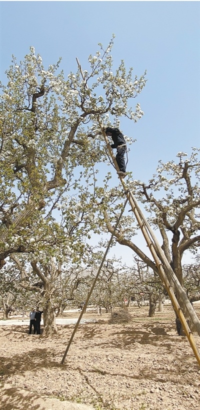 原标题:黄河河畔一座古老的梨园。梨农爬上特制的梯子修剪树枝。张卫健供图 在甘肃省兰州市皋兰县四川省,有一个被誉为“天下第一古梨园”的绿色奇迹。这里是中国梨的原产地,也是栽培梨的原产地和主产区。拥有世界上数量最多、品质最高的老冬梨树和软梨树。近万百年树龄的梨树与黄河、黄土高原共同构成了不断发展的农林综合体。最古老的梨树已有约500年的树龄,堪称世界梨植物王国的“活化石”。通过嫁接等方法,其珍稀古老的种质不仅造福了我国的黄河流域,而且还传播到了东亚和北美的梨产区。今年5月,古代梨园系统被登记为全球重要农业文化遗产。我还记得第一次踏入老梨园时的震撼。那是四月的一个清晨。我早早出发,来到了位于兰州市中心黄河畔的摩天轮公园。大约500年前,兰州段家滩人把水车引到四川,从黄河抽水灌溉,让古梨树得以继续生长。从公园码头登船,向东悠闲步行 45 分钟即可到达四川谷。海岸两侧山峦高峻,悬崖峭壁。不时有水鸟从岩壁中飞出,优雅地飞过船头或船尾。梯田上,河岸上出现了梯田梨田,梨花盛开,如雪如云。两侧的风中飘荡着花香路堤的侧面。继续向北行驶约30分钟,四川码头就在眼前。拾级而上,小路两旁,历经风雨霜霜的老梨树自由绽放。又走了15分钟,我们到达了河对岸的道心阁。站在亭内眺望远方,古梨园的壮丽景色尽收眼底。要进入老梨园,必须穿过吊桥。这座桥是由当地农民于 20 世纪 70 年代初建造的。在这座桥没有建成之前,一代又一代的梨农只能依靠羊皮筏子进出。这种磨难令人心碎。过他们隆桥的时候,他隐隐约约听到歌剧院里传来兰州大鼓的声音,歌声古朴清爽。沿着梨园的小路行走时,我看到了梨子。有的老树像老松一样健康,有的有枝有叶有的像巨大的雨伞一样展开,有的树枝弯曲如龙。树上挂满了岁月的皱纹,枝头开满了梨花。纯白色的梨花被柔软的黄色花蕾包围,在蓝天的映衬下格外引人注目。途中,我们被邀请参观了一个农民经营的梨园博物馆,馆主老魏先生向我们讲述了梨园的情况。他的家族世代种植梨。 “我祖父的祖父很喜欢它的树荫,”他指着院子里一棵有 300 年历史的梨树说道。老魏老师还带我们去看了村民表演的太平太鼓和“铁心”。他告诉我,这种“铁芯”技术源自“天波式”,一种古代梨园特有的农业技术。园内的老梨树高达10米,普通工具无法够到。一位聪明的梨种植者发明了一种用坚固的松木制成的梯子。主梯与立杆形成稳定的三角形支撑,底部为楔形结构,可牢固插入地面。梯身系有耐磨绳套和踏板。据老魏介绍,以前父母爬上这个梯子就像是步行穿越平原,去高海拔授粉、采摘水果、修剪树枝。他形容这一幕“就像在空中跳芭蕾,看着很吓人,但他们的手紧紧地握着。”
